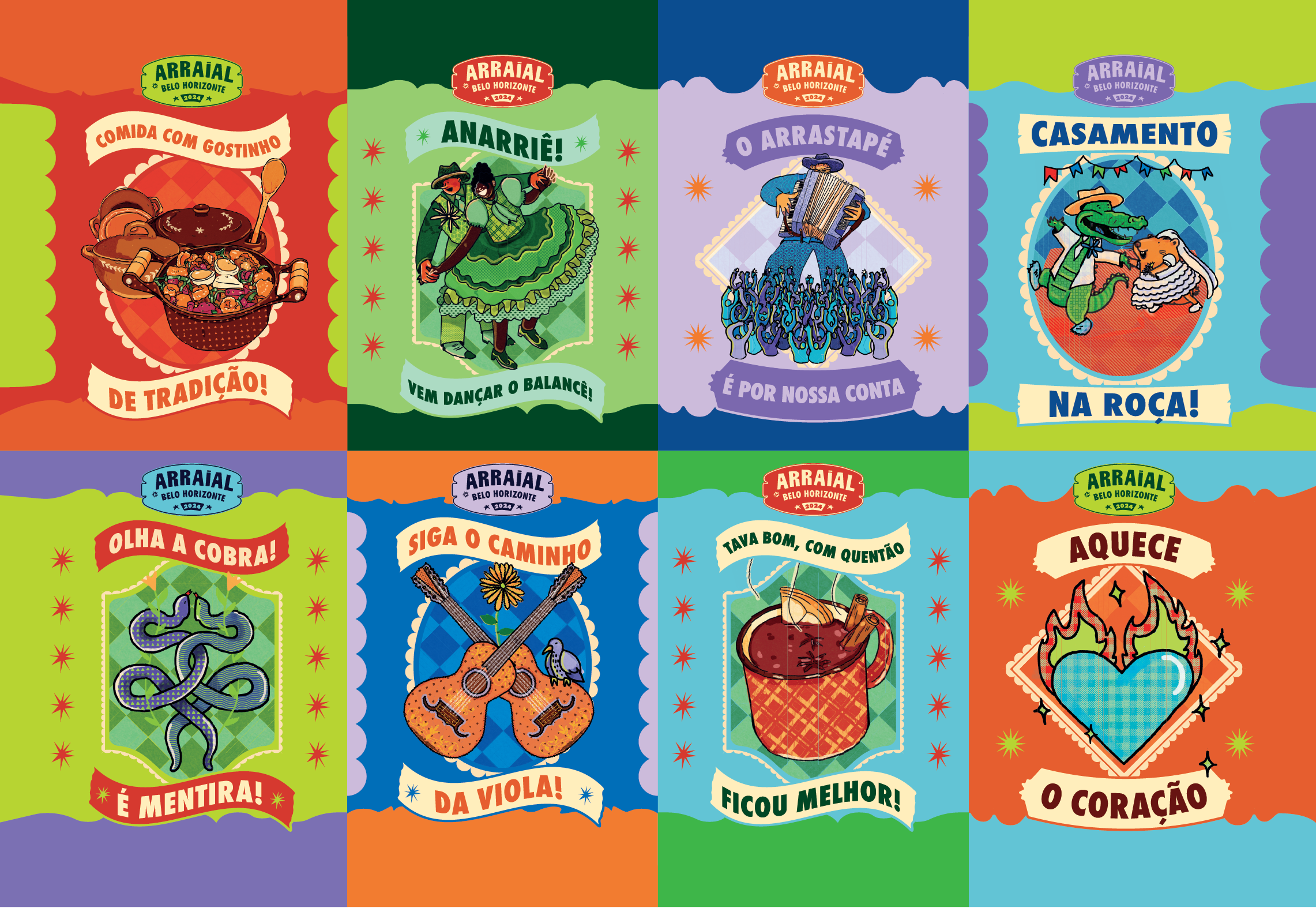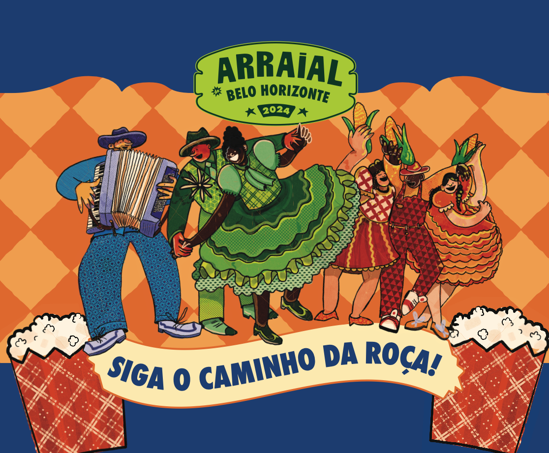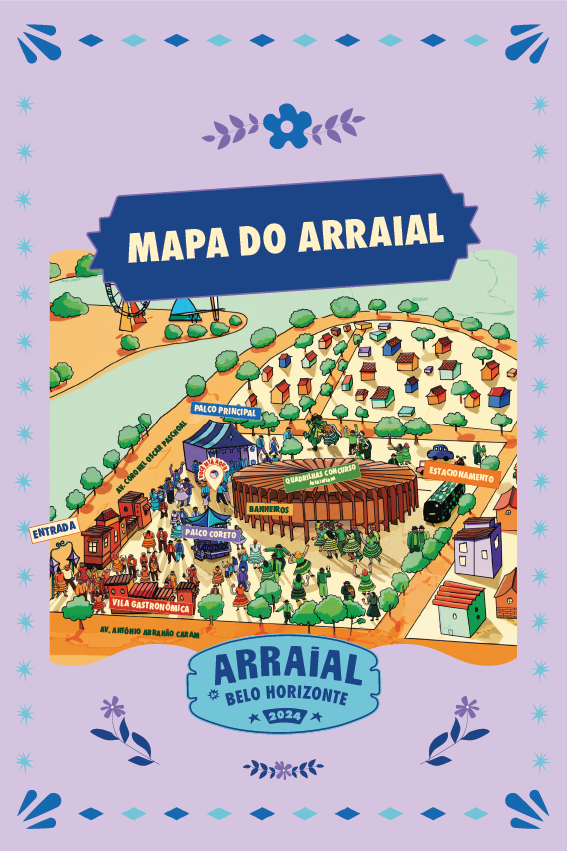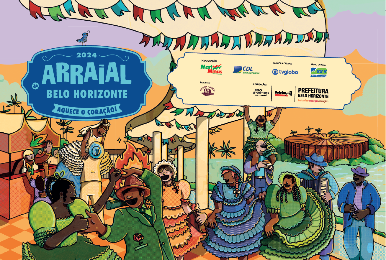 Em 2024, trabalhando como designer e ilustradora na Belotur, sob a coordenação da designer Bia Perdigão, criei as ilustrações para o o Arraial de Belo Horizonte em 2024.
